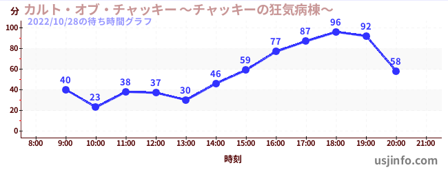 • カルト・オブ・チャッキー ~チャッキーの狂気病棟~$B$N(B2022年10月28日の待ち時間
