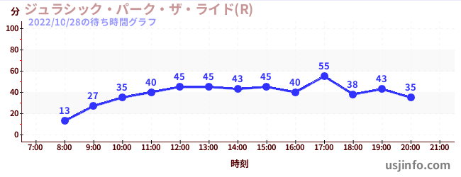 • ジュラシック・パーク・ザ・ライド(R)$B$N(B2022年10月28日の待ち時間