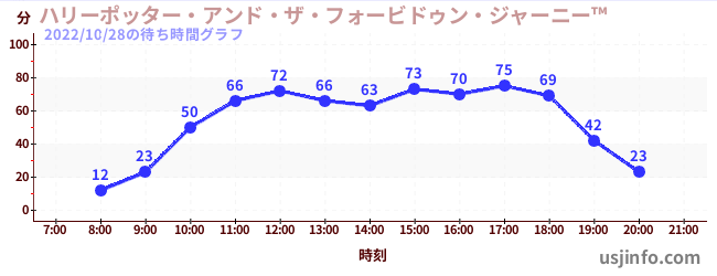 • ハリーポッター・アンド・ザ・フォービドゥン・ジャーニー™$B$N(B2022年10月28日の待ち時間