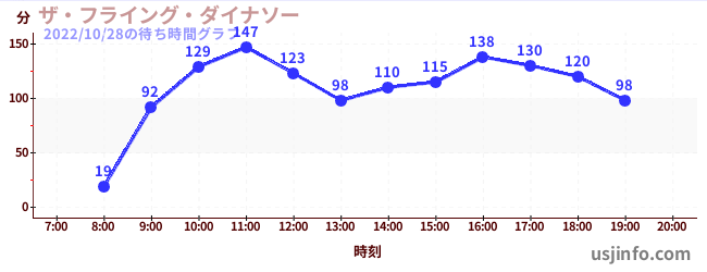 • ザ・フライング・ダイナソー$B$N(B2022年10月28日の待ち時間