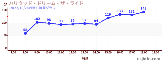 • ハリウッド・ドリーム・ザ・ライド$B$N(B2022年10月28日の待ち時間