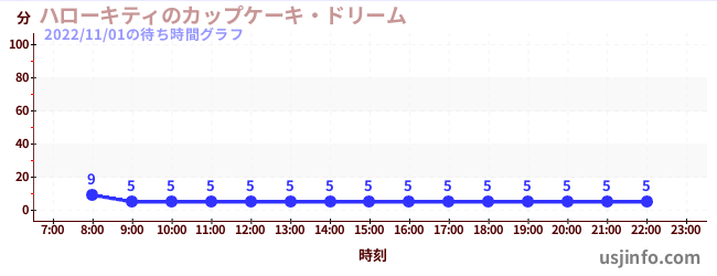 • ハローキティのカップケーキ・ドリーム$B$N(B2022年11月01日の待ち時間