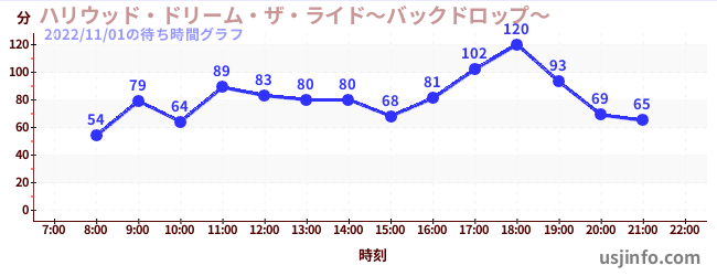 • ハリウッド・ドリーム・ザ・ライド〜バックドロップ〜$B$N(B2022年11月01日の待ち時間