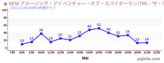 • NEW アメージング・アドベンチャー・オブ・スパイダーマン(TM)・ザ・ライド 4K3D$B$N(B2022年11月01日の待ち時間