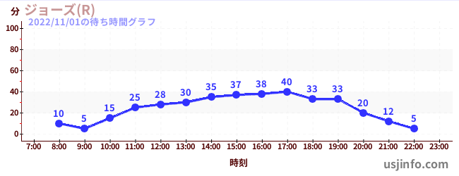 • ジョーズ(R)$B$N(B2022年11月01日の待ち時間