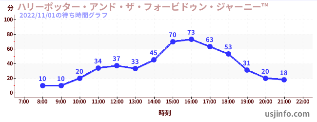• ハリーポッター・アンド・ザ・フォービドゥン・ジャーニー™$B$N(B2022年11月01日の待ち時間
