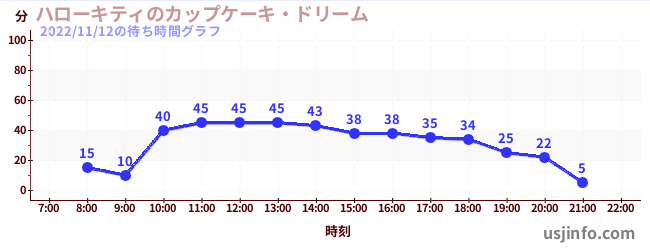 • ハローキティのカップケーキ・ドリーム$B$N(B2022年11月12日の待ち時間