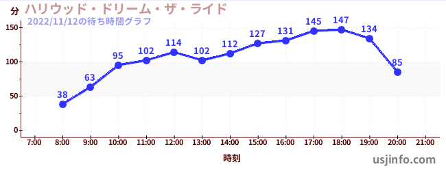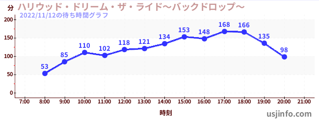• ハリウッド・ドリーム・ザ・ライド〜バックドロップ〜$B$N(B2022年11月12日の待ち時間