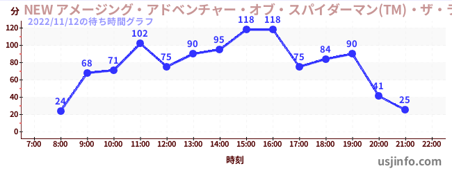 • NEW アメージング・アドベンチャー・オブ・スパイダーマン(TM)・ザ・ライド 4K3D$B$N(B2022年11月12日の待ち時間