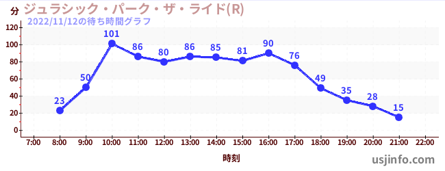 • ジュラシック・パーク・ザ・ライド(R)$B$N(B2022年11月12日の待ち時間