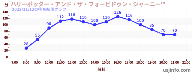 • ハリーポッター・アンド・ザ・フォービドゥン・ジャーニー™$B$N(B2022年11月12日の待ち時間