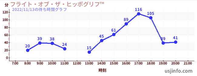 • フライト・オブ・ザ・ヒッポグリフ™$B$N(B2022年11月13日の待ち時間