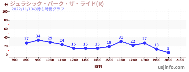 • ジュラシック・パーク・ザ・ライド(R)$B$N(B2022年11月13日の待ち時間