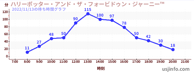 • ハリーポッター・アンド・ザ・フォービドゥン・ジャーニー™$B$N(B2022年11月13日の待ち時間
