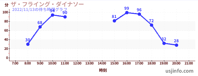 • ザ・フライング・ダイナソー$B$N(B2022年11月13日の待ち時間