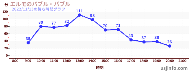 • エルモのバブル・バブル$B$N(B2022年11月13日の待ち時間