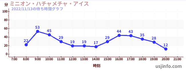 • ミニオン・ハチャメチャ・アイス$B$N(B2022年11月13日の待ち時間