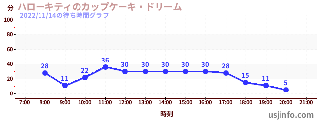 • ハローキティのカップケーキ・ドリーム$B$N(B2022年11月14日の待ち時間