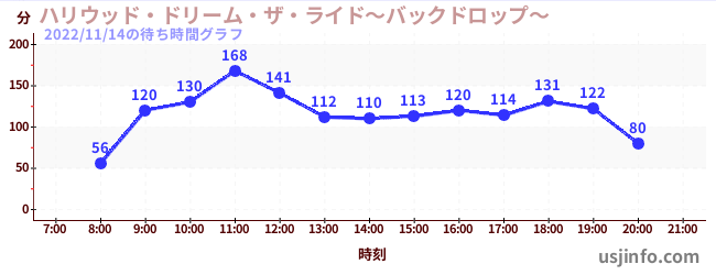 • ハリウッド・ドリーム・ザ・ライド〜バックドロップ〜$B$N(B2022年11月14日の待ち時間