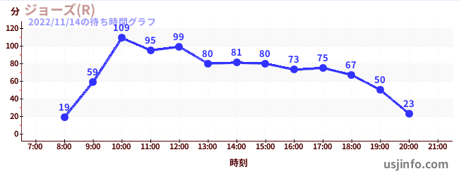 • ジョーズ(R)$B$N(B2022年11月14日の待ち時間