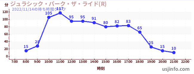 • ジュラシック・パーク・ザ・ライド(R)$B$N(B2022年11月14日の待ち時間
