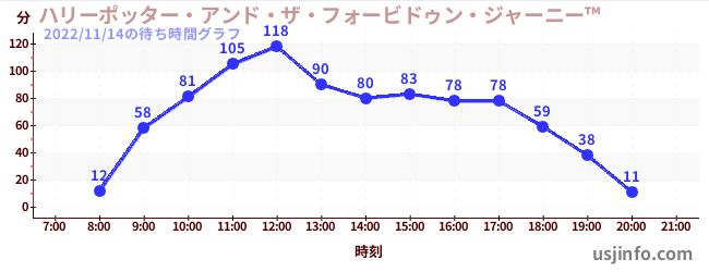 • ハリーポッター・アンド・ザ・フォービドゥン・ジャーニー™$B$N(B2022年11月14日の待ち時間