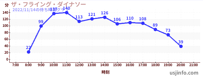 • ザ・フライング・ダイナソー$B$N(B2022年11月14日の待ち時間