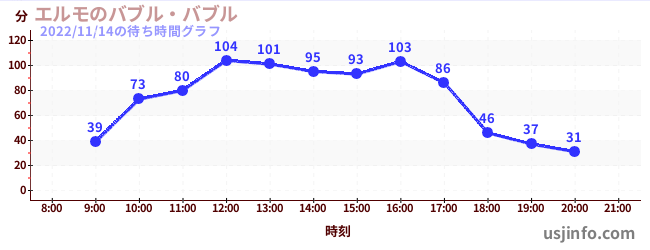 • エルモのバブル・バブル$B$N(B2022年11月14日の待ち時間