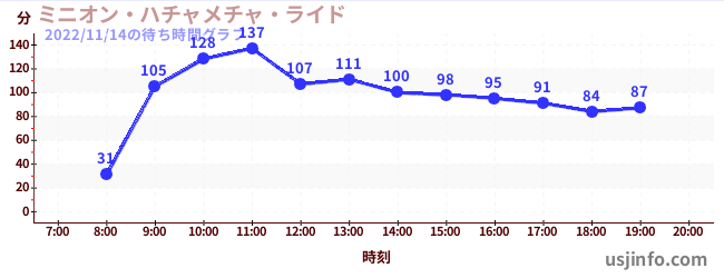 • ミニオン・ハチャメチャ・ライド$B$N(B2022年11月14日の待ち時間