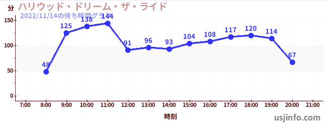 • ハリウッド・ドリーム・ザ・ライド$B$N(B2022年11月14日の待ち時間