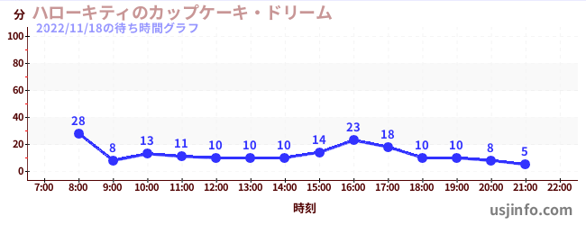 • ハローキティのカップケーキ・ドリーム$B$N(B2022年11月18日の待ち時間