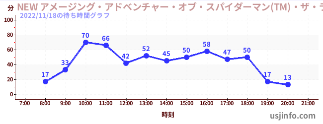 • NEW アメージング・アドベンチャー・オブ・スパイダーマン(TM)・ザ・ライド 4K3D$B$N(B2022年11月18日の待ち時間