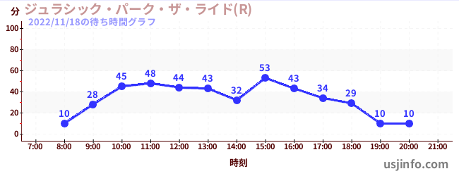 • ジュラシック・パーク・ザ・ライド(R)$B$N(B2022年11月18日の待ち時間