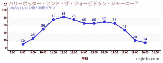 • ハリーポッター・アンド・ザ・フォービドゥン・ジャーニー™$B$N(B2022年11月18日の待ち時間