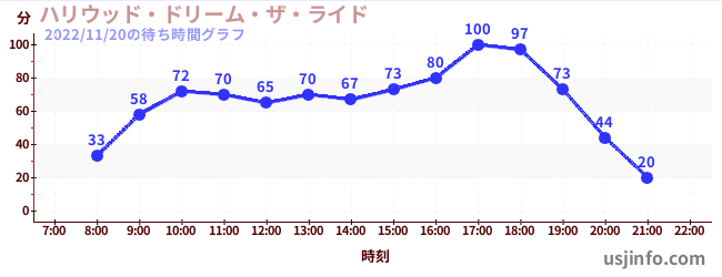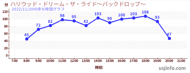 • ハリウッド・ドリーム・ザ・ライド〜バックドロップ〜$B$N(B2022年11月20日の待ち時間