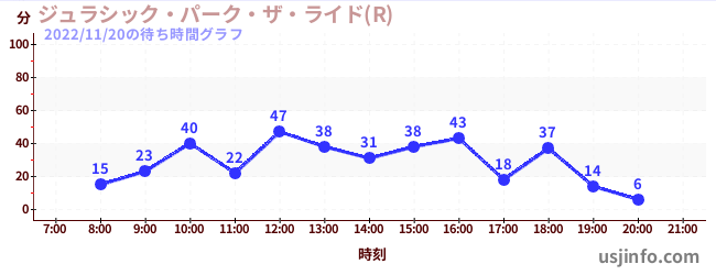 • ジュラシック・パーク・ザ・ライド(R)$B$N(B2022年11月20日の待ち時間