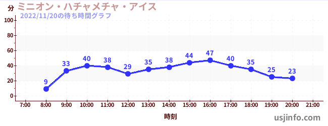 • ミニオン・ハチャメチャ・アイス$B$N(B2022年11月20日の待ち時間