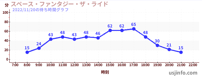 • スペース・ファンタジー・ザ・ライド$B$N(B2022年11月20日の待ち時間