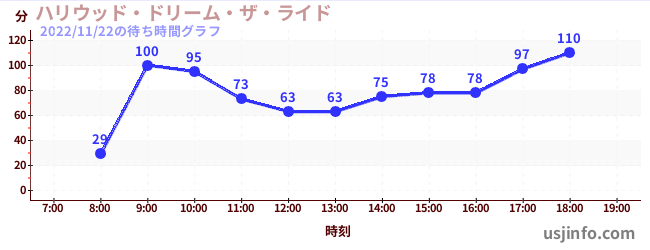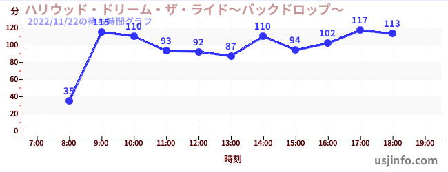 • ハリウッド・ドリーム・ザ・ライド〜バックドロップ〜$B$N(B2022年11月22日の待ち時間
