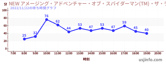 • NEW アメージング・アドベンチャー・オブ・スパイダーマン(TM)・ザ・ライド 4K3D$B$N(B2022年11月22日の待ち時間