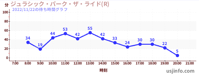 • ジュラシック・パーク・ザ・ライド(R)$B$N(B2022年11月22日の待ち時間