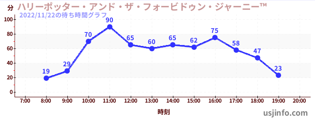 • ハリーポッター・アンド・ザ・フォービドゥン・ジャーニー™$B$N(B2022年11月22日の待ち時間