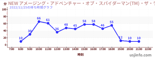 • NEW アメージング・アドベンチャー・オブ・スパイダーマン(TM)・ザ・ライド 4K3D$B$N(B2022年11月25日の待ち時間