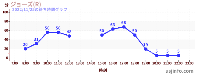 • ジョーズ(R)$B$N(B2022年11月25日の待ち時間