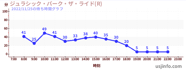 • ジュラシック・パーク・ザ・ライド(R)$B$N(B2022年11月25日の待ち時間