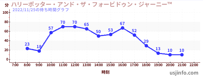 • ハリーポッター・アンド・ザ・フォービドゥン・ジャーニー™$B$N(B2022年11月25日の待ち時間