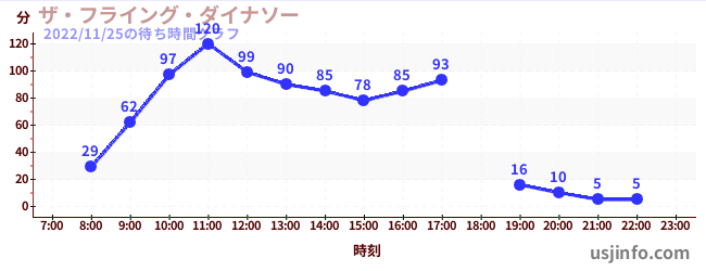 • ザ・フライング・ダイナソー$B$N(B2022年11月25日の待ち時間