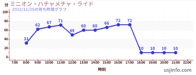 • ミニオン・ハチャメチャ・ライド$B$N(B2022年11月25日の待ち時間