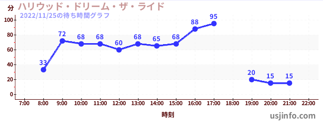 • ハリウッド・ドリーム・ザ・ライド$B$N(B2022年11月25日の待ち時間