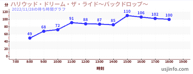 • ハリウッド・ドリーム・ザ・ライド〜バックドロップ〜$B$N(B2022年11月28日の待ち時間